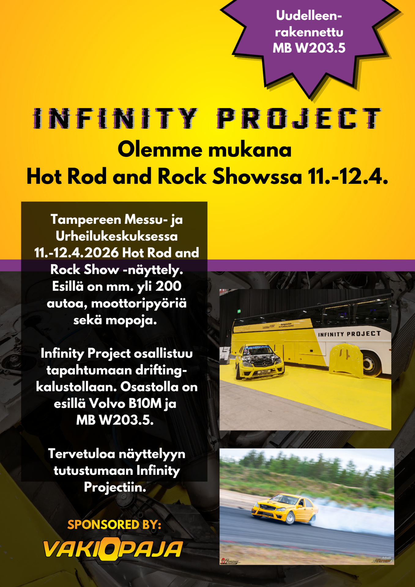 Kuten vuonna 2025, Infinity Project on mukana Tampereella 11.-12.4 järjestettävässä Hot Rod and Rock Show -autonäyttelyssä myös vuonna 2026!